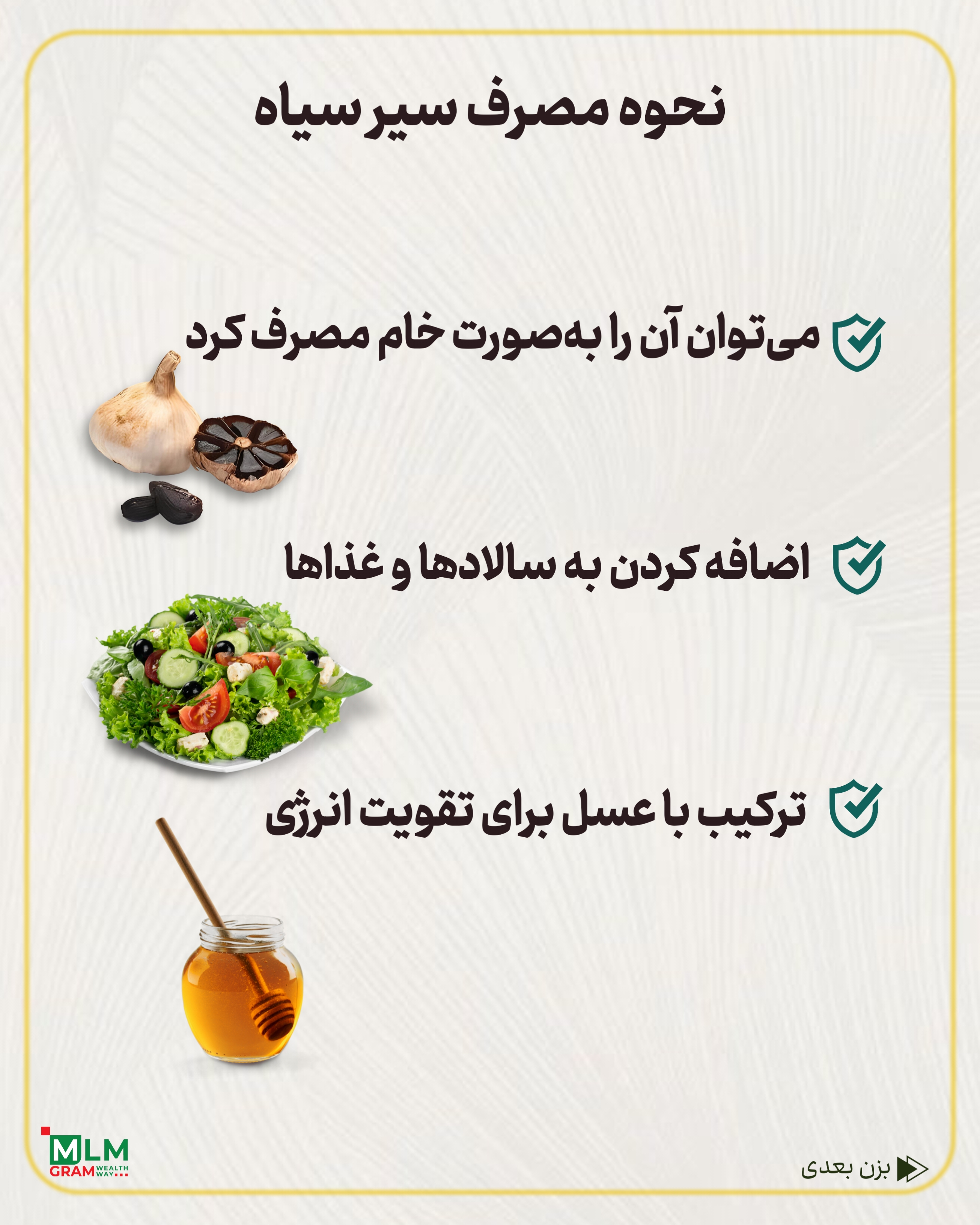 316 پست اسلایدی ۵ محصول مرتبط: سیرِ سیاه نوع محتوی: «پُست» شبکه اجتماعی زمان انتشار: 1404/04/11 پست اسلایدی سیر ۵.zip (17.57 مگابایت)